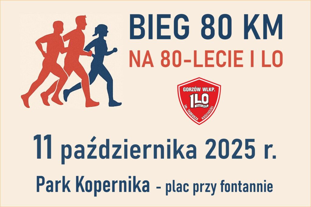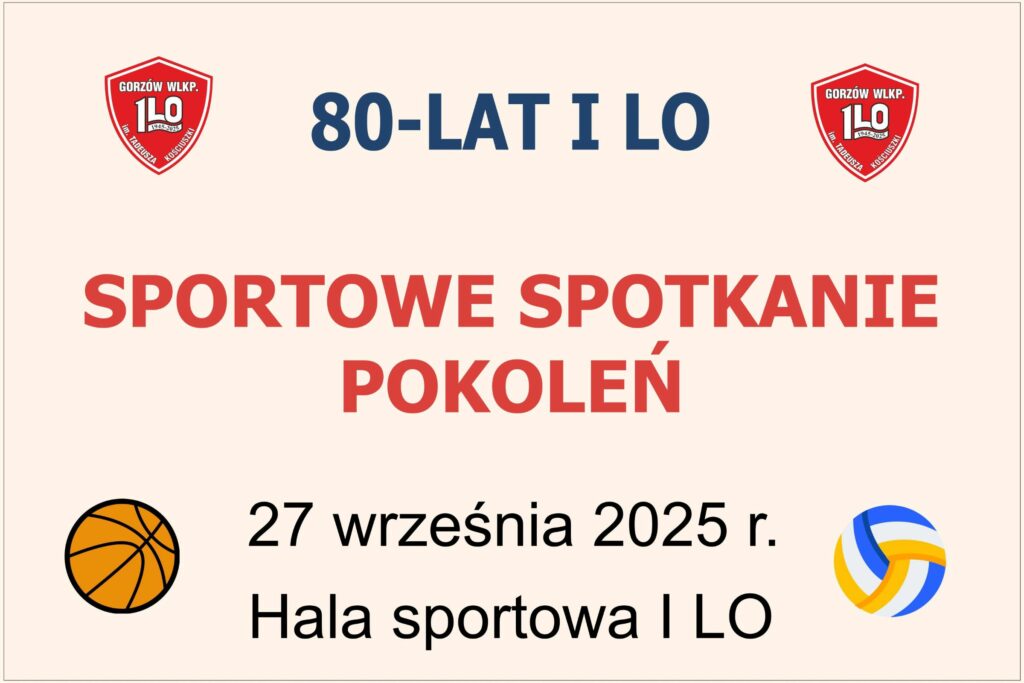 Z okazji jubileuszu 80-lecia I Liceum Ogólnokształcącego w Gorzowie Wlkp. serdecznie zapraszamy uczniów, absolwentów oraz przyjaciół szkoły na wyjątkową imprezę